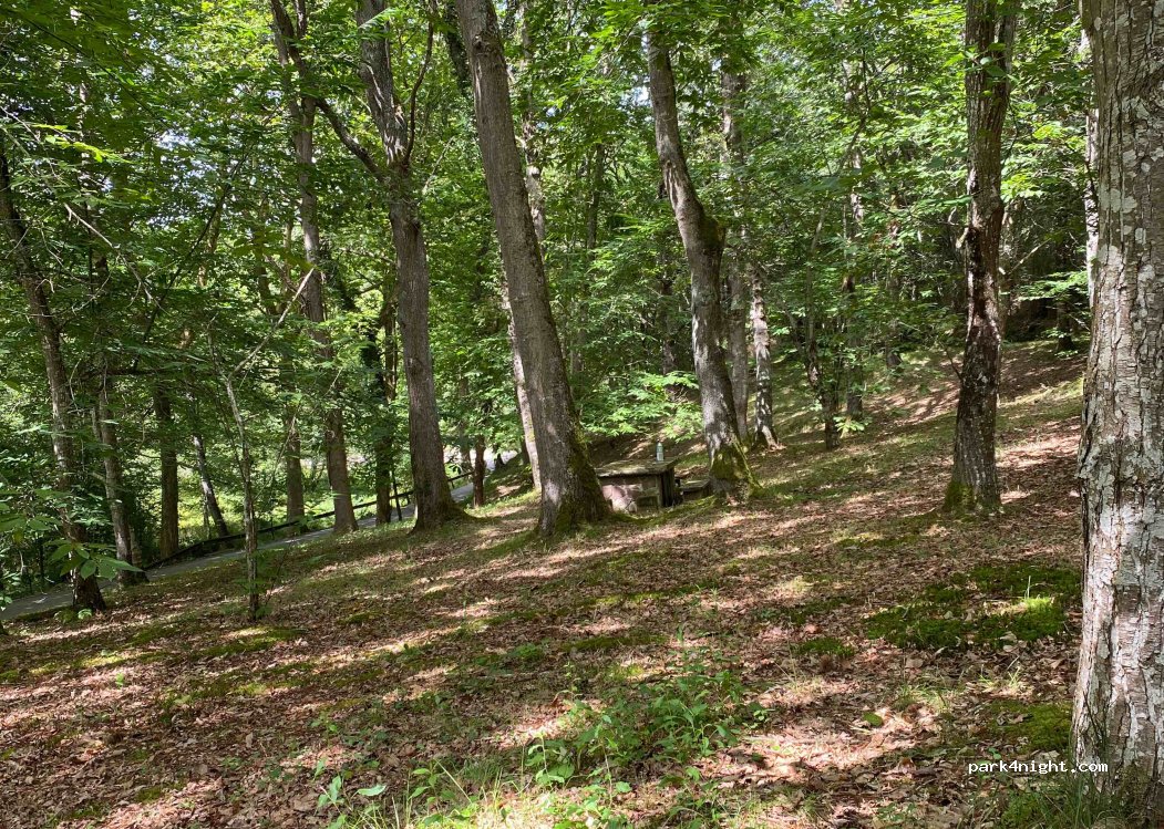 Nice little stop off / lunch area. Didn’t stay here but lovely picnic benches (2) near river. Near road but seemed quiet enough.