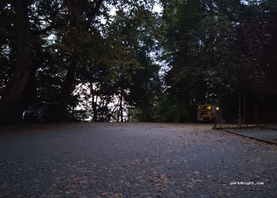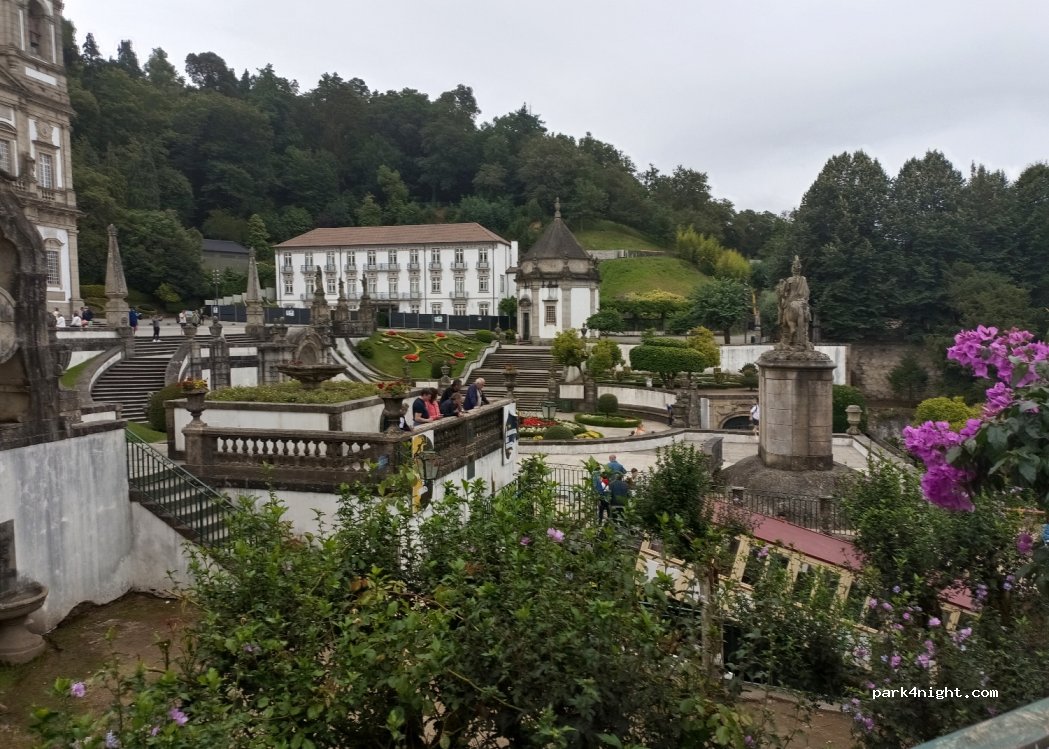 Car park for the Bom Jesus sanctuary funicular. Come in the evening after closing to have a free space. About 5 comfortable places under the trees. close to the ascent of the sanctuary on foot with its 577 steps. A magnificent sunset at the top.