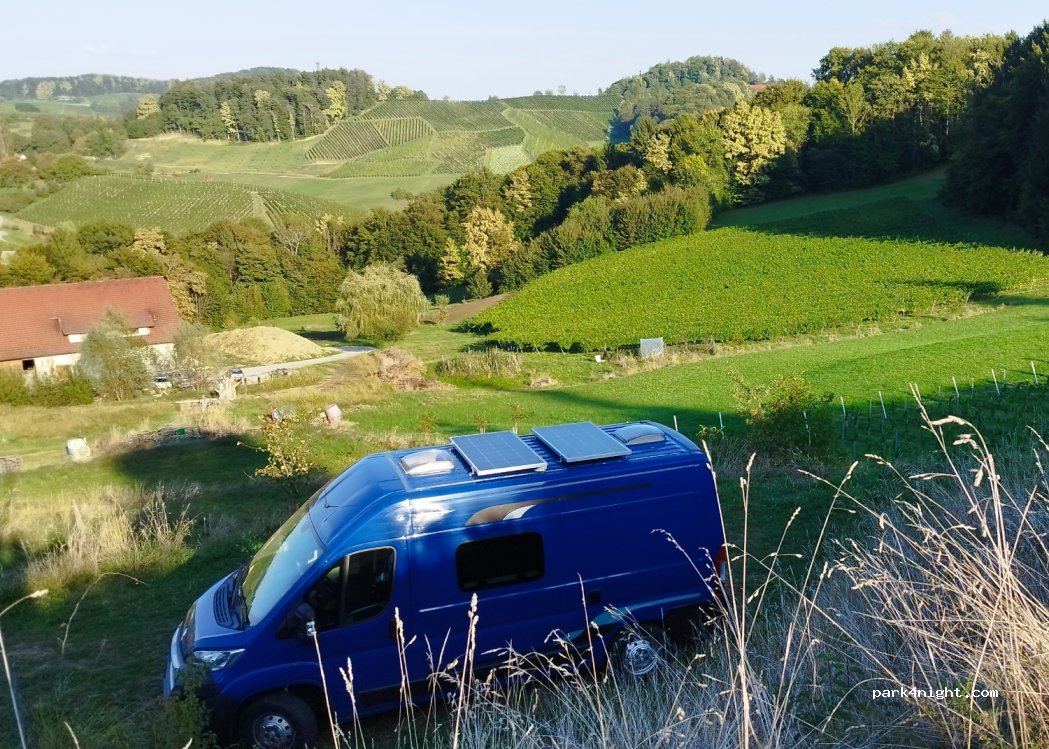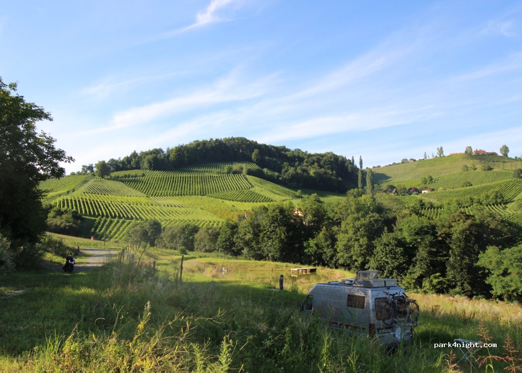 Drei hervorragende Nächte, absolut ruhig, weiter Blick in die Weinberge, ebene Standplätze einzeln verteilt, super nette Betreiber, Strom, Wasser, sehr saubere WC´s und Duschen, Eier, Wurst, Käse, Wein zu kaufen, tagsüber mit E-Bike in Maribor, Aussichtswarte in Razgledni stolp Plač, Buschenschank Vino & Turisticna Kmetija Jarc 10 min gehen.