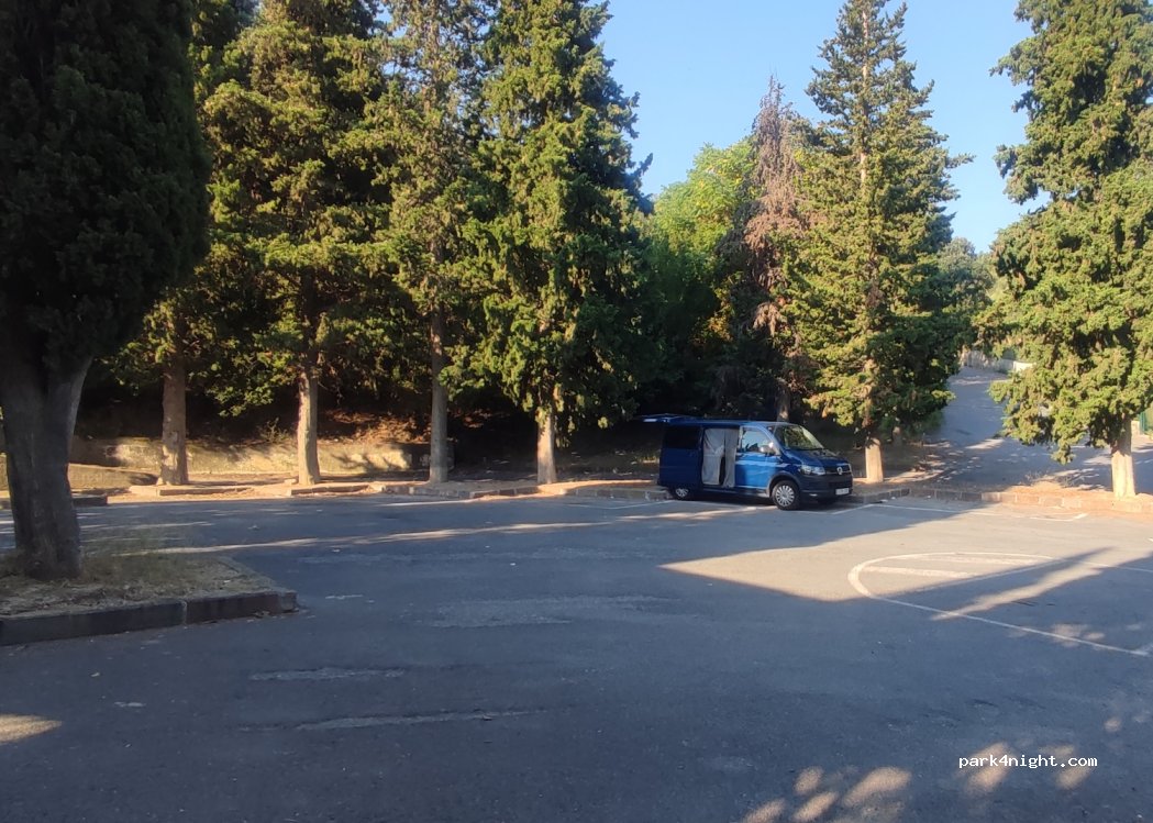Cemetery car park. For last minute because in the corner not much. It's wide.