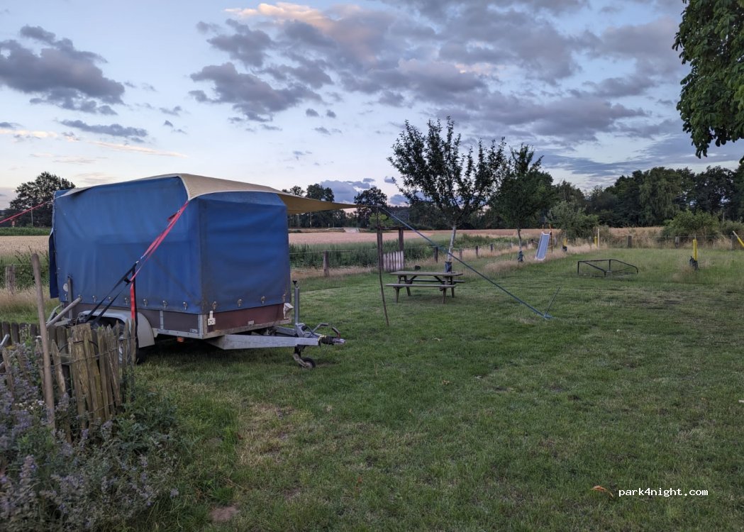 Anne is a lovely owner who gave us a warm welcome. We had the pasture all to our selves traveling through to Poland. There is a train track nearby but it did not interrupt our night's sleep. We woke up with a beautiful sunrise!