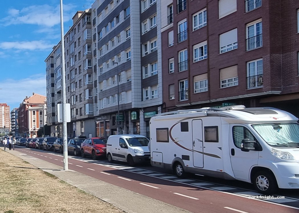 Emplacement parfait pour visiter la ville, parking payant, mais à partir de 20h jusqu’à 09h le lendemain matin c'est gratuit. On est à 200m de la plage, 500m du centre. Je suis resté 2 nuits et 1 jour avec mon CC de 7m sans problème et des nuits calme. Le parking m'a couter que 8€55 pour plus de 24h. c'est correct.