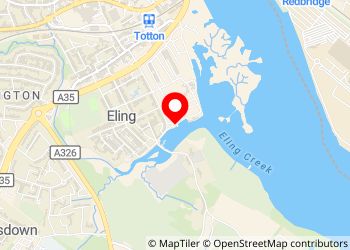Petit espace vert. L'accès à la pelouse est libre, mais un panneau délimite la zone goudronnée. Un pub, la rivière Eling et la plage de Goate se trouvent à proximité.