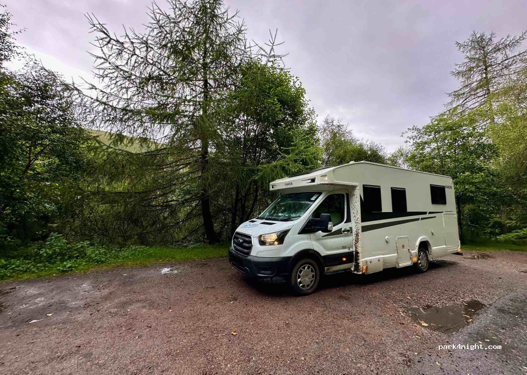 Not suitable for overnight stays, this is a hillwalkers access car park. Staying overnight and preventing others from using the car park for its intended purpose is inconsiderate. If you're not heading into the hills then please use another parking spot.
