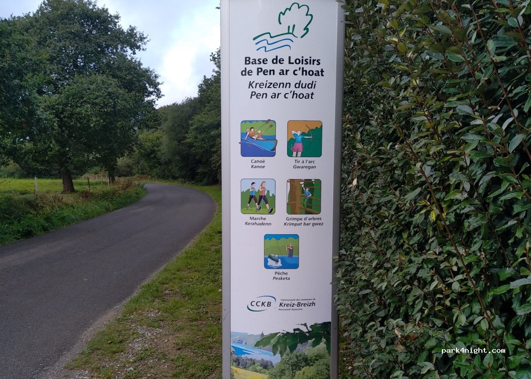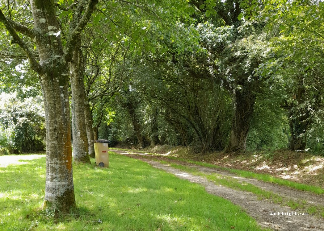petit aire de pique nique avec une table et une poubelle route passante la journée mais la nuit assez calme adapté aux Vans comme au grand gabarit endroit propre et assez discret séparé de la route par une haie pas d'eau ,pas de commodité juste à côté de la route d'accès à la base nautique