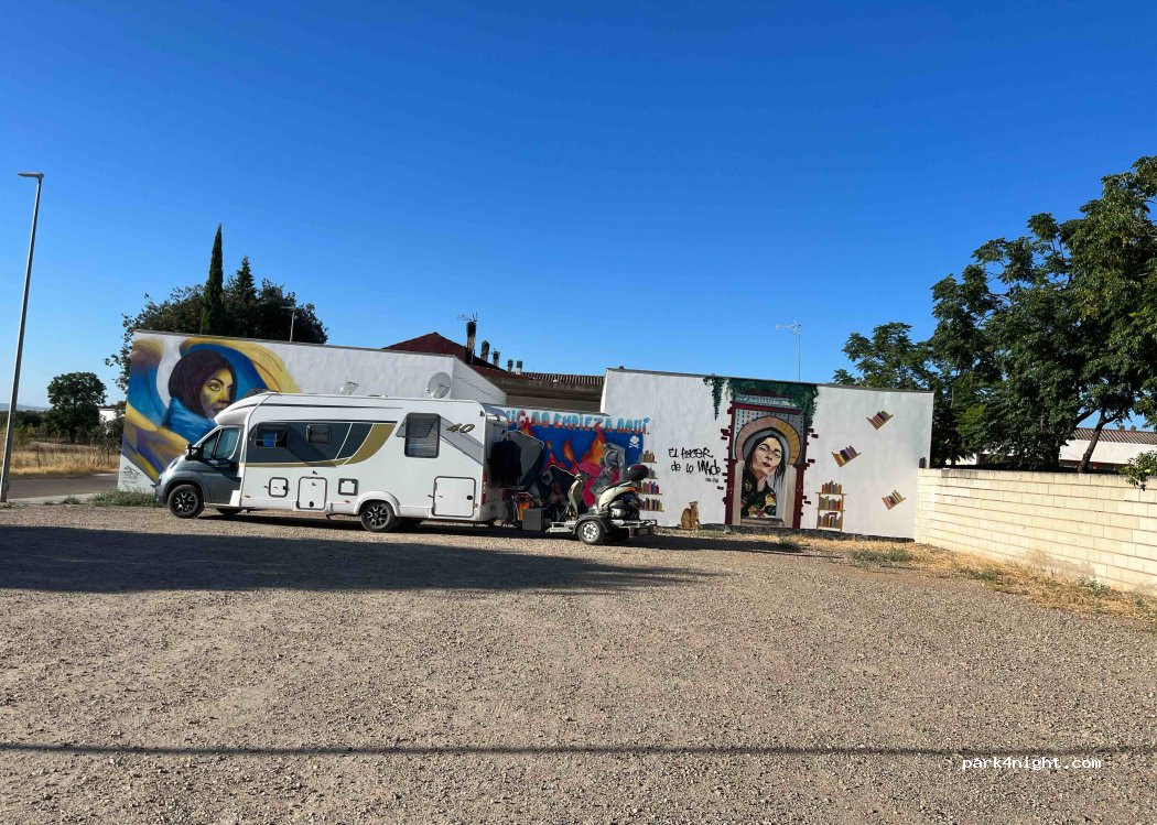 Amplio parking detrás de un colegio, cerca de todos los servicios. Hay cafetería, gasolinera, comercio y justo al lado del centro de la ciudad. Llegamos un sábado por la noche perdiéndonos por la zona. Muy calmado.