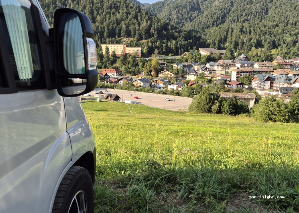 Gute Aussicht auf Tarvis, man steht eben und es ist ruhig. Parkplatz ist gratis. Mülltonne gibt es weiter unten auf dem anderen Parkplatz für den man bezahlen muss. Sonst keine Ausstattung. 4G 8mbits mit iWind. Im Winter direkt an der Piste. Die Carabinieri sind ohne stehen zu bleiben vorbeigefahren. Dürfte geduldet sein, solange man keine Stühle etc. rausstellt und den Platz sauber verlässt.