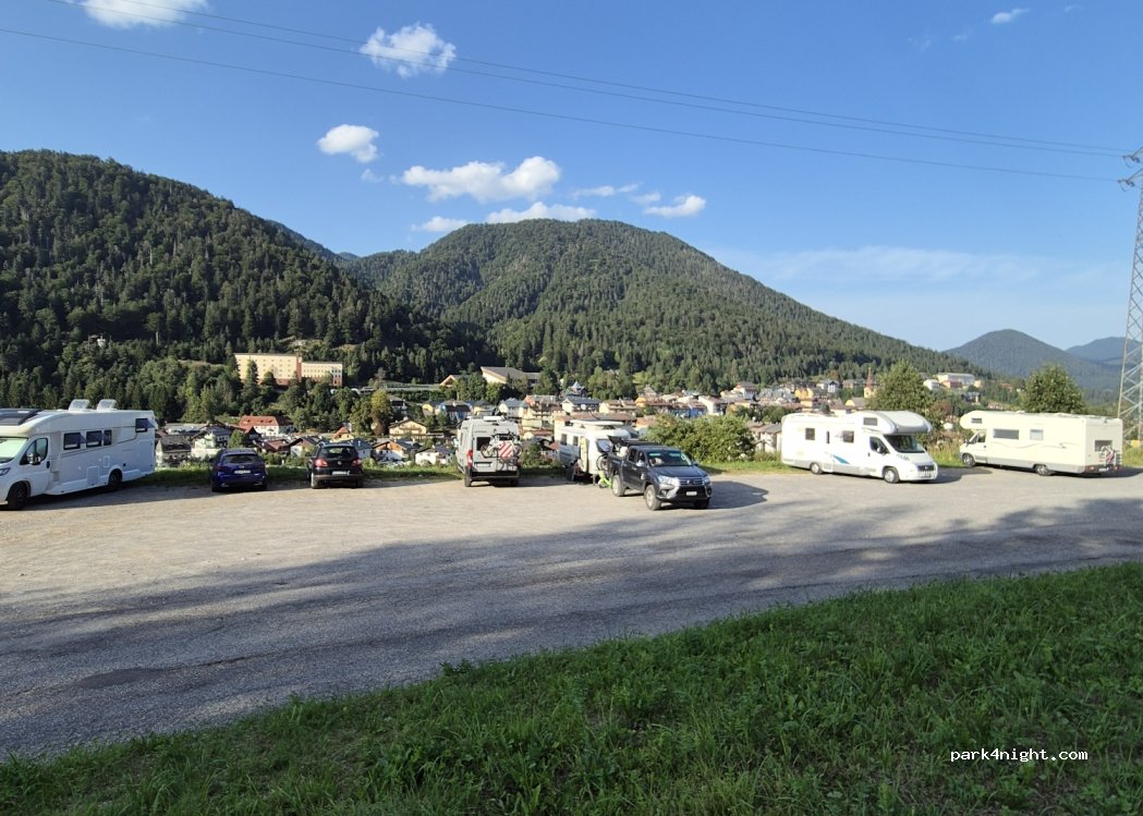 Abbiamo sostato qui un giorno e una notte di dicembre. Il posteggio si trova adiacente alle poste da sci, per cui è bene arrivare o di mattina presto o nel pomeriggio. La sera si spopola e abbiamo dormito quasi da soli in piena tranquillità. Per arrivare in centro al paese 15 min. a piedi.