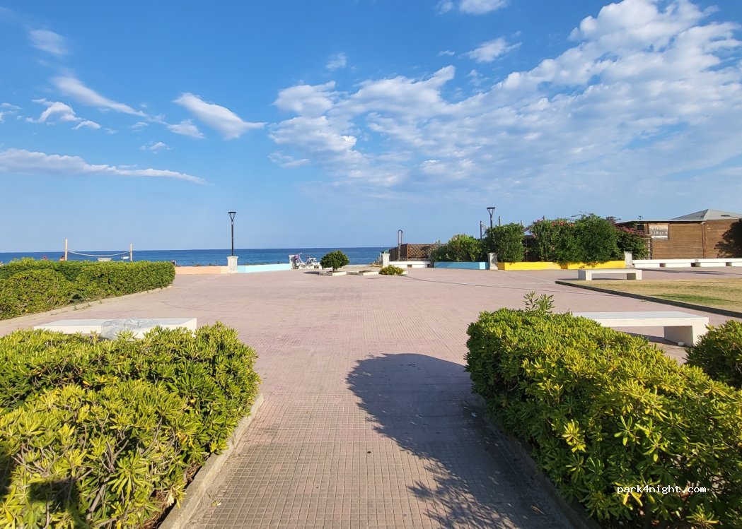 Einer schöner, großer, aber stark frequentierter Stadtparkplatz nur durch einen Gehweg vom Strand getrennt. Es gibt Spielplätze, Restaurants, den besten Beachclub "Le Club" und einen direkten Blick aufs Meer. Perfekt um den Ort zu sehen oder eine Nacht zu verbringen. Nicht für längere, ruhige Tage zur Entspannung geeignet.