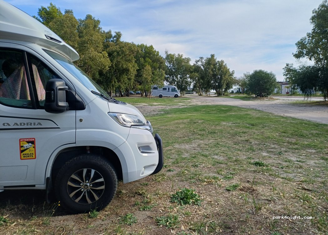 Very nice parking with water availability on the promenade (NE edge of the parking). If you stand maximum close you still need approx 17m hose. For children perfect, very nice, large and clean playground. For those who need absolute silence not recommended, since the are cars going all day long.