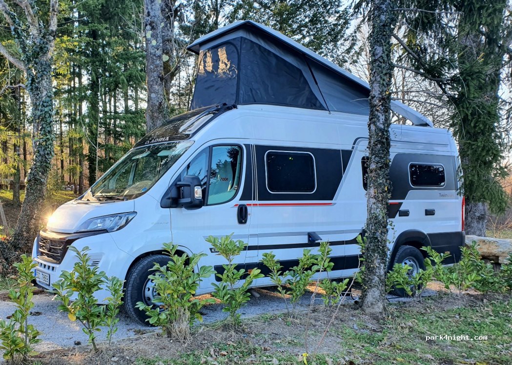 Hezké místo na odpočinek po návštěvě Plitvických jezer. Úžasný klid. Ještě je ve výstavbě, ale sociální zařízení už je hotové. Schází dodělat místo na omývání nádobí a výlevka chemického WC. Ale nevadilo. Bylo to ok. Lze rozdělat oheň. Trochu dražší - 36€ za noc není málo. Ale je otevřeno celoročně. Některá místa vyžadují hodně klínů na vyrovnání.
