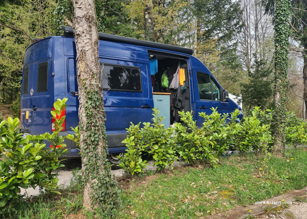 Miejsce na kampera w cieniu strych drzew. Nowe sanitariaty, nowy basen. Dużo miejsca na każdego kampera. Właściciel bardzo miły i pomocny. Blisko starego miasta. Wjechaliśmy na 2 noce bez uprzedniej rezerwacji. 2 osoby + 2 psy + full service =35 EUR/ noc.