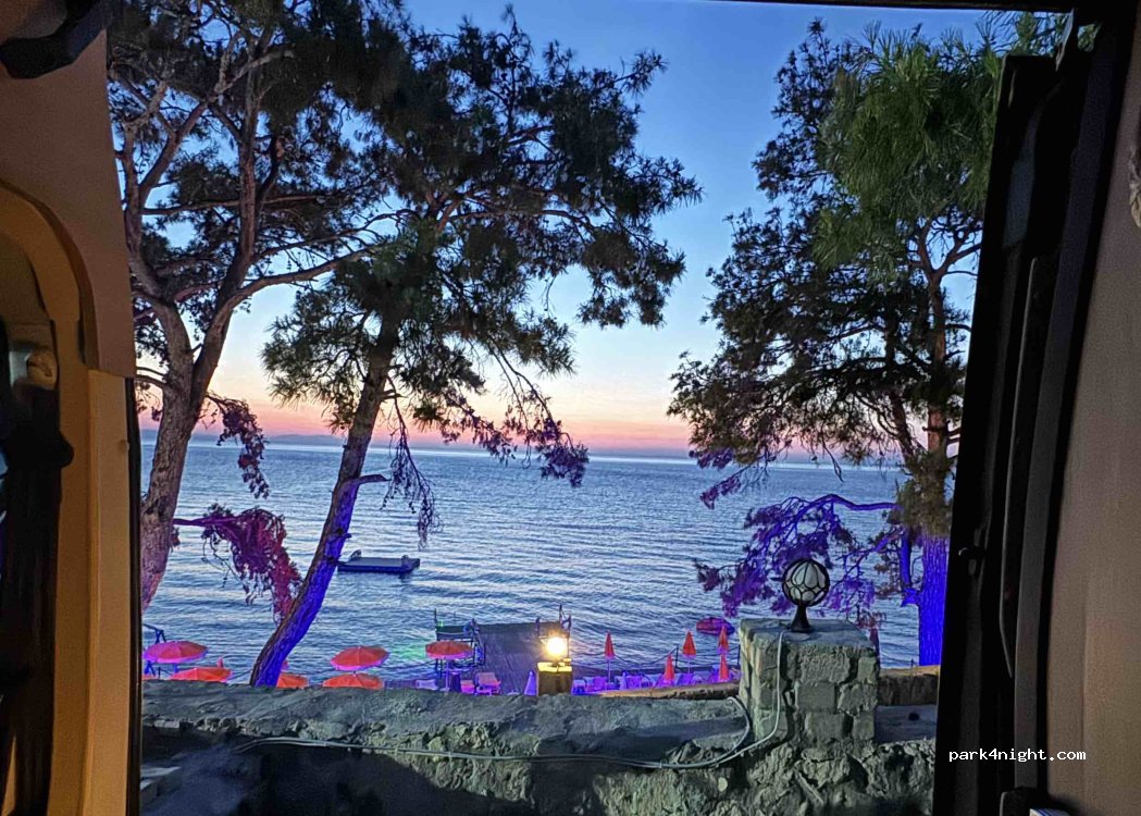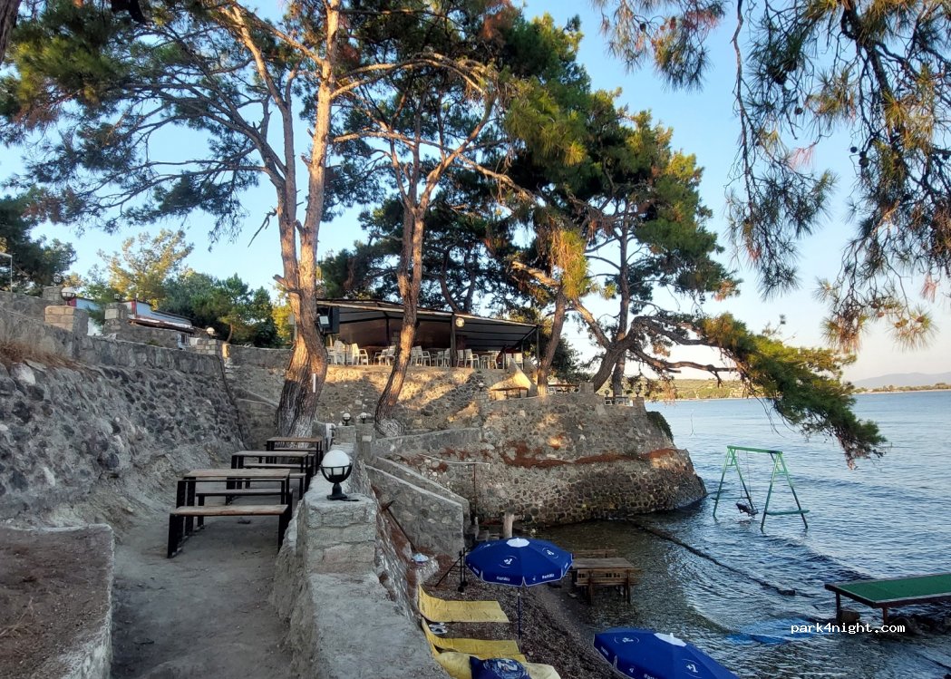 Pour ceux qui recherchent le calme et la tranquillité. Cam Camping petit camping en terrasses au bord de l'eau avec plage de sable et de galets. Restaurant joliment aménagé avec petit-déjeuner et vue sur Lesvos. Un personnel très amical et serviable. Supérette à 800 m. eau de mer cristalline et nature pure. Les installations sanitaires ne sont pas terribles mais devraient être rénovées l'année prochaine. Les trois derniers kilomètres ne sont pas si faciles, mais ça vaut le coup. beaucoup d'ombre et surtout des tentes Env. dix emplacements camping-car. Je suis arrivé avec un mobil-home de 7 m. principalement des clients locaux. Plusieurs réfrigérateurs disponibles. Des prix équitables.