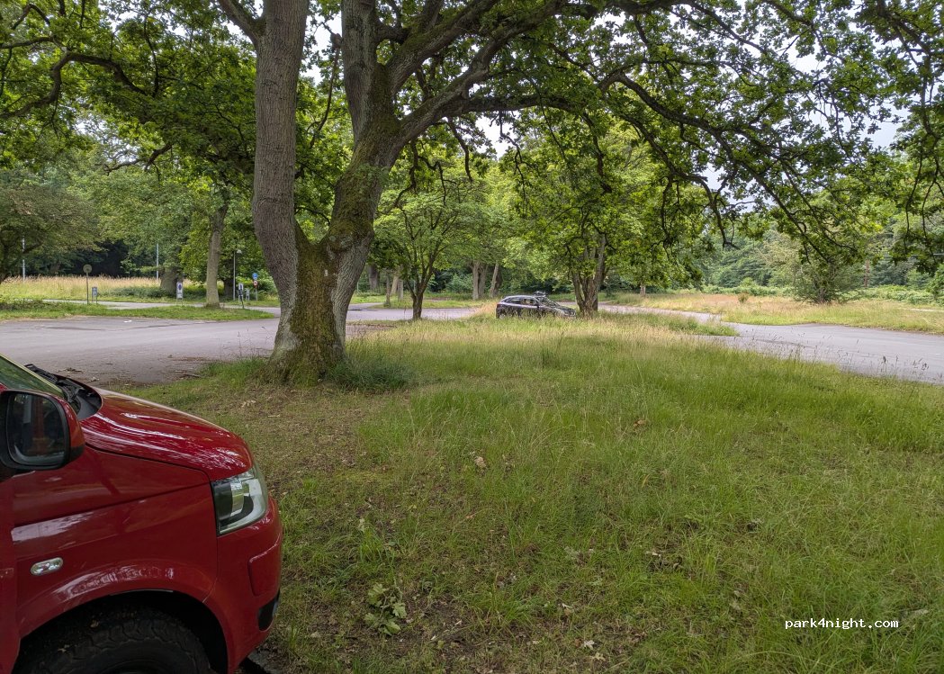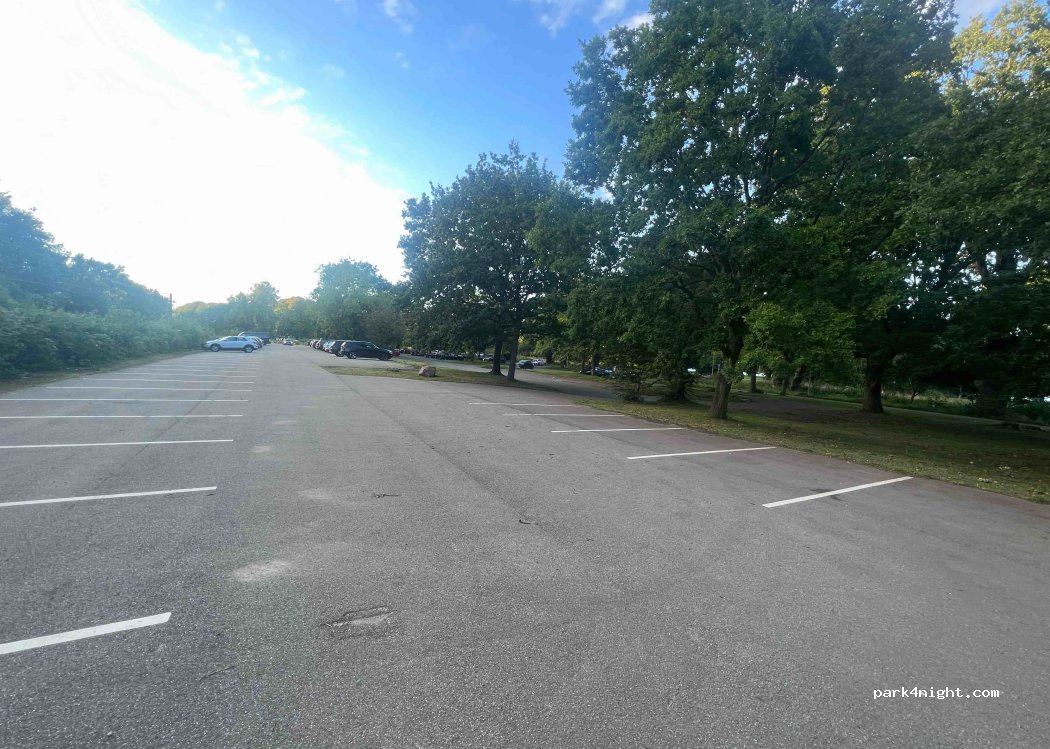 Fin asfalteret parkeringsplads med masser af plads samt græs og træer. Nydelige toiletter. Nem adgang til Dyrehaven via tunnel under togbanen. En smule larm fra togbanen og Strandvejen.