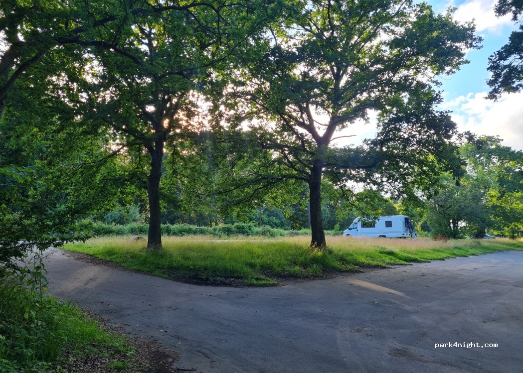 Parcheggio molto ampio e pianeggiante , 50 min in bici dal centro di Copenhagen . Abbiamo passato due notti qui. Molto pulito tutte le mattine passano a ripulire il parco. Vicino accesso al parco dei cervi e 10 min in bici da una spiaggia. Peccato per il rumore della linea ferroviaria vicina