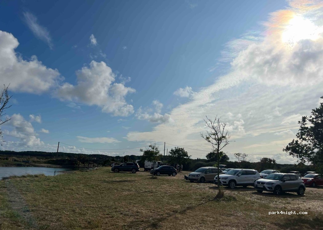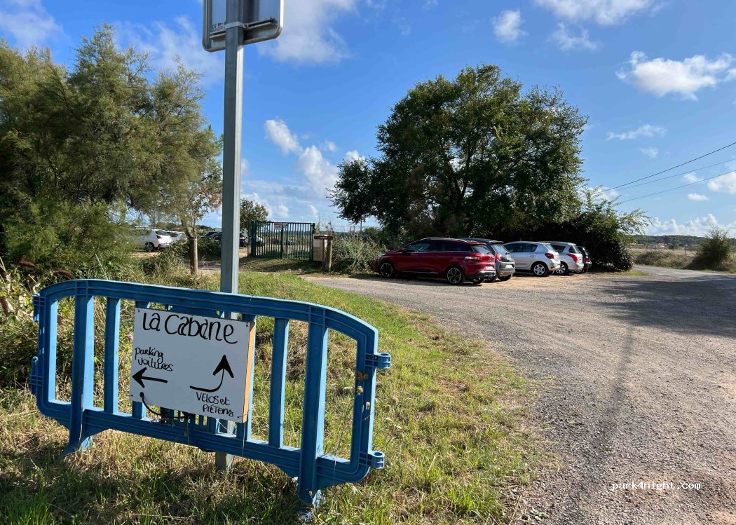 Il s’agit du parking de « la cabane » bar restaurant qui fait aussi de la location de Paddles et canoës. Pas d’ombre et potentiellement du monde qui vient se promener sur ou autour du marais. Agréable pour une pause midi. Pas tester la nuit.