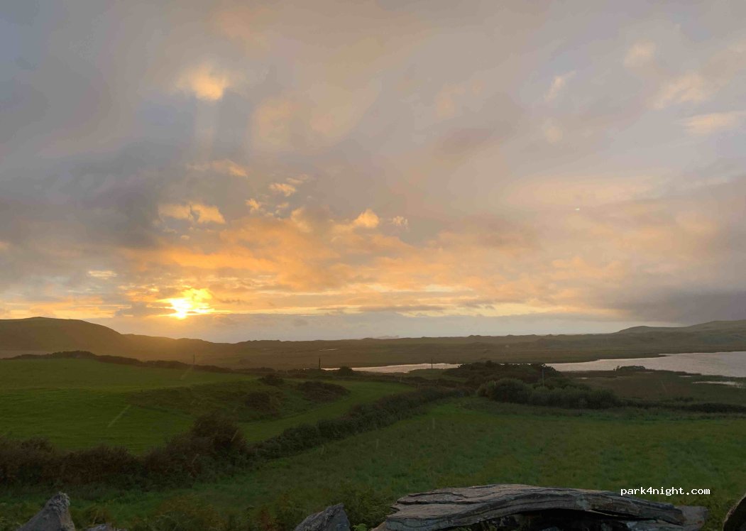 Corcreggan Mill Dunfanaghy - Lieu avec différents types d'hébergement : bnb, glamping etc et 7 emplacements camping-car. Super accueil. Emplacements plats. Accès inclus aux douches chaudes, XX, lavabos, kitchenette extérieure. Possibilité de remplir d'eau douce et de vidanger les eaux usées. La réservation est recommandée. La réception ferme à 19h. Et superbe vue sur les emplacements depuis le sommet.