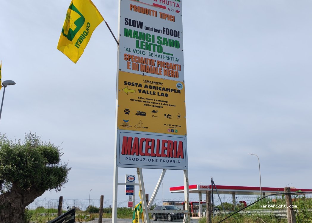 Area consigliatissima, gestori gentili e accoglienti, fornitissimo negozio di frutta e verdura di produzione propria. Macelleria e cornetti al mattino con marmellate fatte da loro. Preparano anche pranzi con i loro prodotti. Spiaggia a 100 m. vicino alla foce del fiume Lao.
