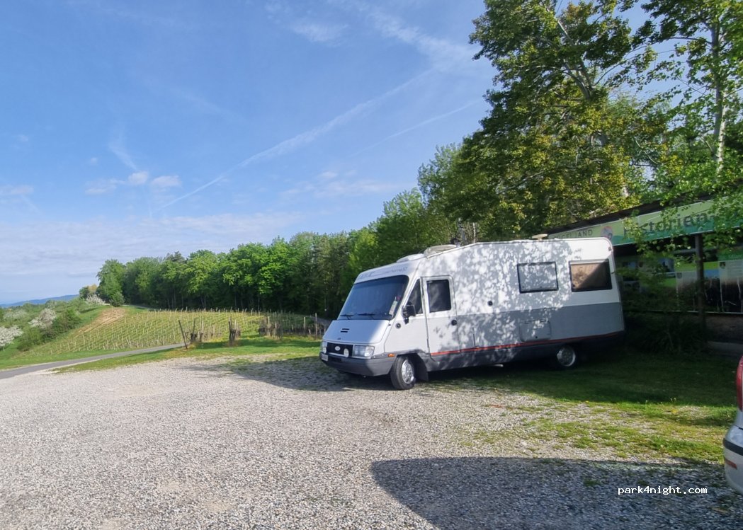 Ein ganz besonderer Platz mitten in den Weinbergen mit toller Aussicht. Sehr geschmackvoll urig mit viel Liebe gestaltet. Der 24h SB-Laden bietet alles was das Herz begehrt. WC und Dusche top. Der Preis für alles sehr fair. Leider wurde unsere Nachtruhe durch ein paar externe Leute die sich lautstark "Nachschub" besorgten, gestört. Ansonsten waren wir begeistert und haben uns sehr wohl gefühlt.