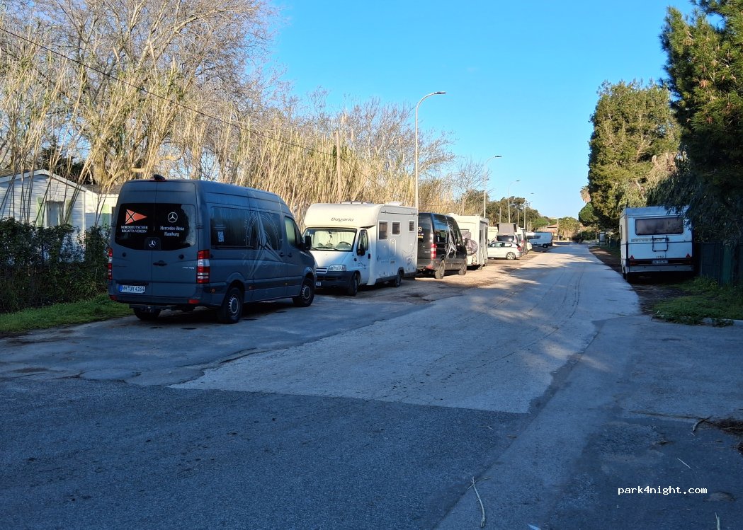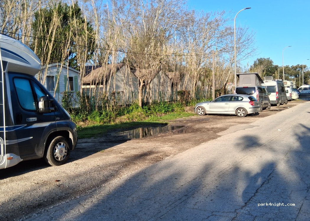 stationnement autorisé jour et nuit pour combien de temps en encore ? aucun service et passage fréquent de voitures jusqu'à minuit, dès 5 h les camions de livraisons arrivent pour ravitailler les camping.. avantages : la mer toute proche et stationnement gratuit... hors saison ça doit être plus fréquentable !