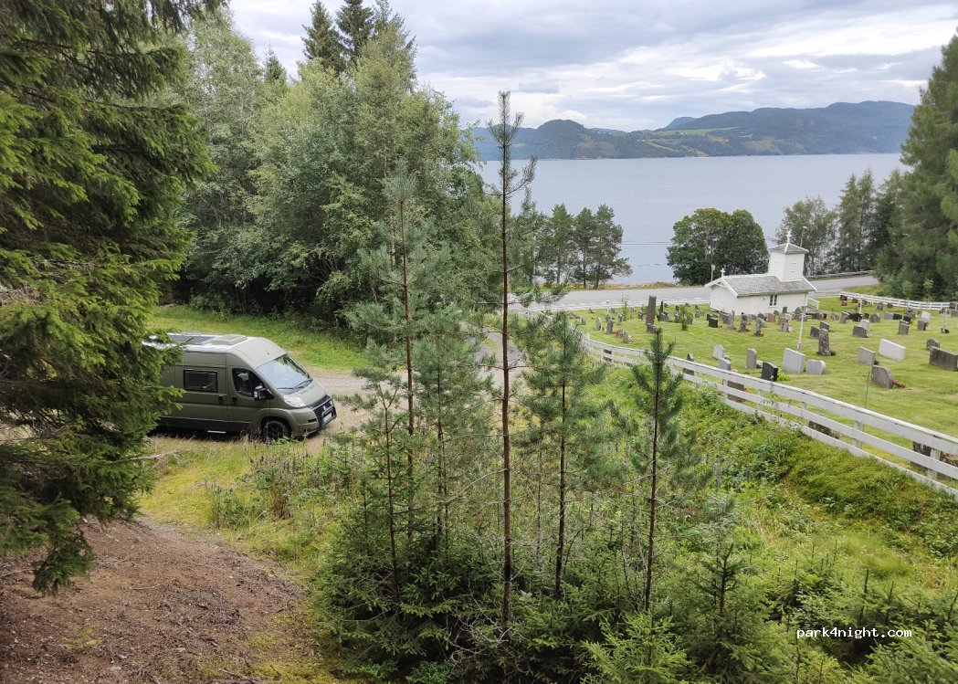 It is a very nice spot. However! A family came to visit the graveyard in the morning. An elderly woman was really firm in telling us that it is absolutely unacceptable to camp next to a graveyard. One would not do such a respect lacking thing in norway.