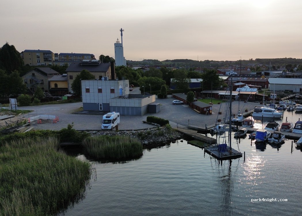 Parcheggio con corrente/docce/toilettes nel tranquillo porticciolo. Pagamento online 130 dk. Mancano carico/scarico, ma si trovano in giro.