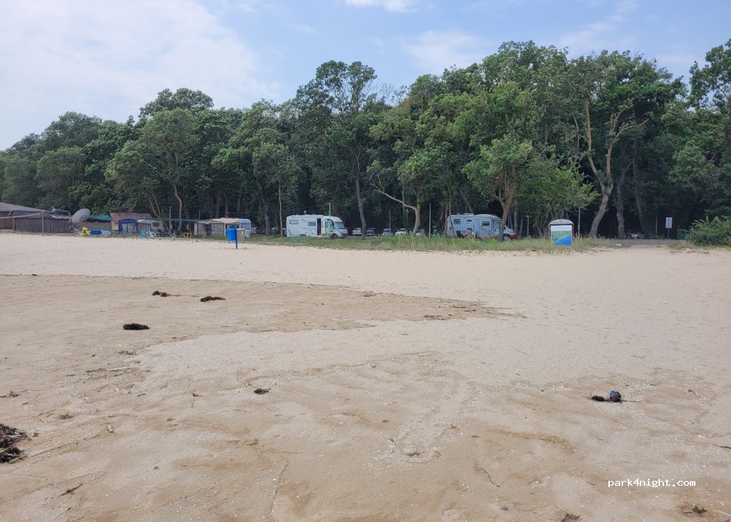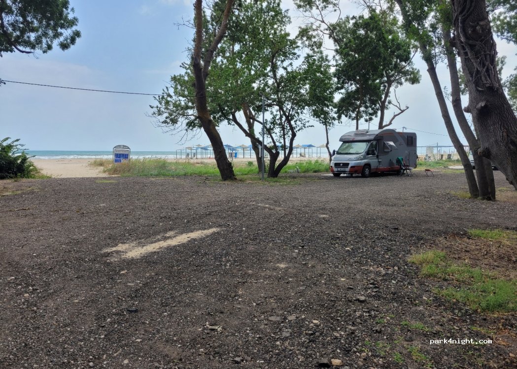 Platz der über Hotel nebenan verwaltet wird. Obwohl das Hotel noch geschlossen war, wurden wir nett empfangen und haben 10€ incl. Strom und Schlüssel für WC/Dusche gezahlt. Plätze direkt am Strand. Zufahrt in das Gebiet nur über Schranke für 5€/Tag möglich.