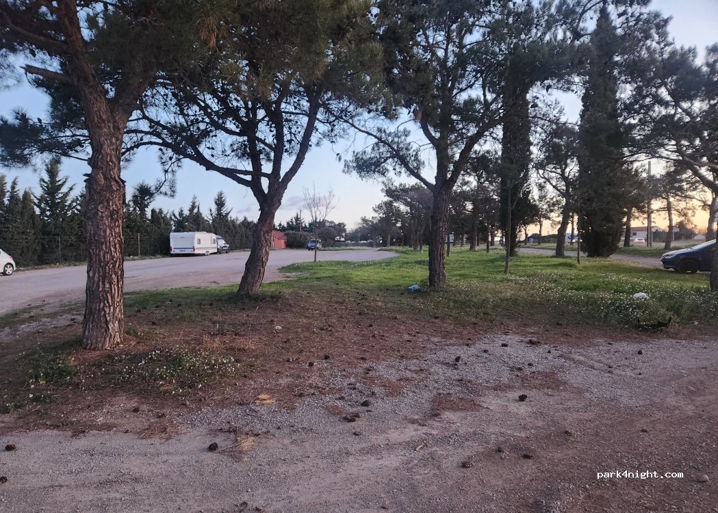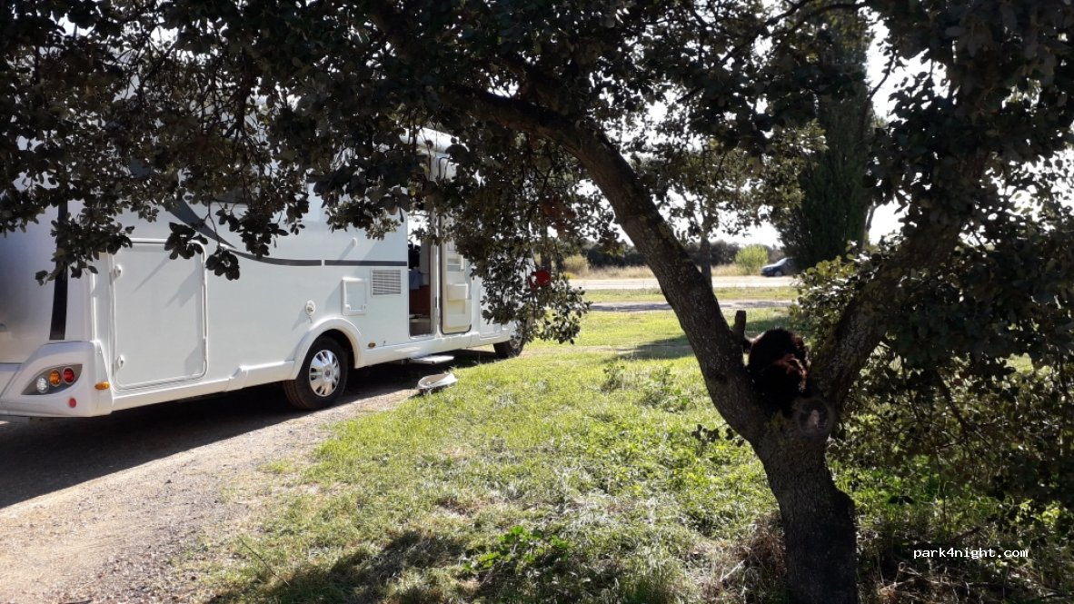 Parking for all, free, semi-shaded, called: Aire de la Gardiole, flat stabilized at the roundabout of the D 114 and the D 612 going to Sète. There is always room. It is only frequented by a few expert motorhomes, a few carpooling cars and sometimes a large passing heavyweight! Possibility of emergency supplies at the Altea campsite located on the other side of the crossroads. (Inquire on the spot!) Only in summer the D 612 (sea road) is quite rolling, but for one night it should be fine! Possibility of long hikes or mountain bike rides, on the Gardiole nearby which offers many tracks and paths!