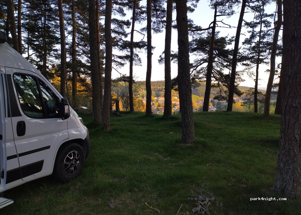 Schöner Platz am Waldrand. Ruhig und gute Wandermöglichkeiten. Die Platte lässt sich gut mit einem größeren Wohnmobil vom Dorf Lalouvesc aus befahren, was sich auch sehr lohnt. Fantastischer Blick auf die Alpen!