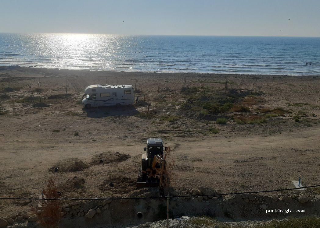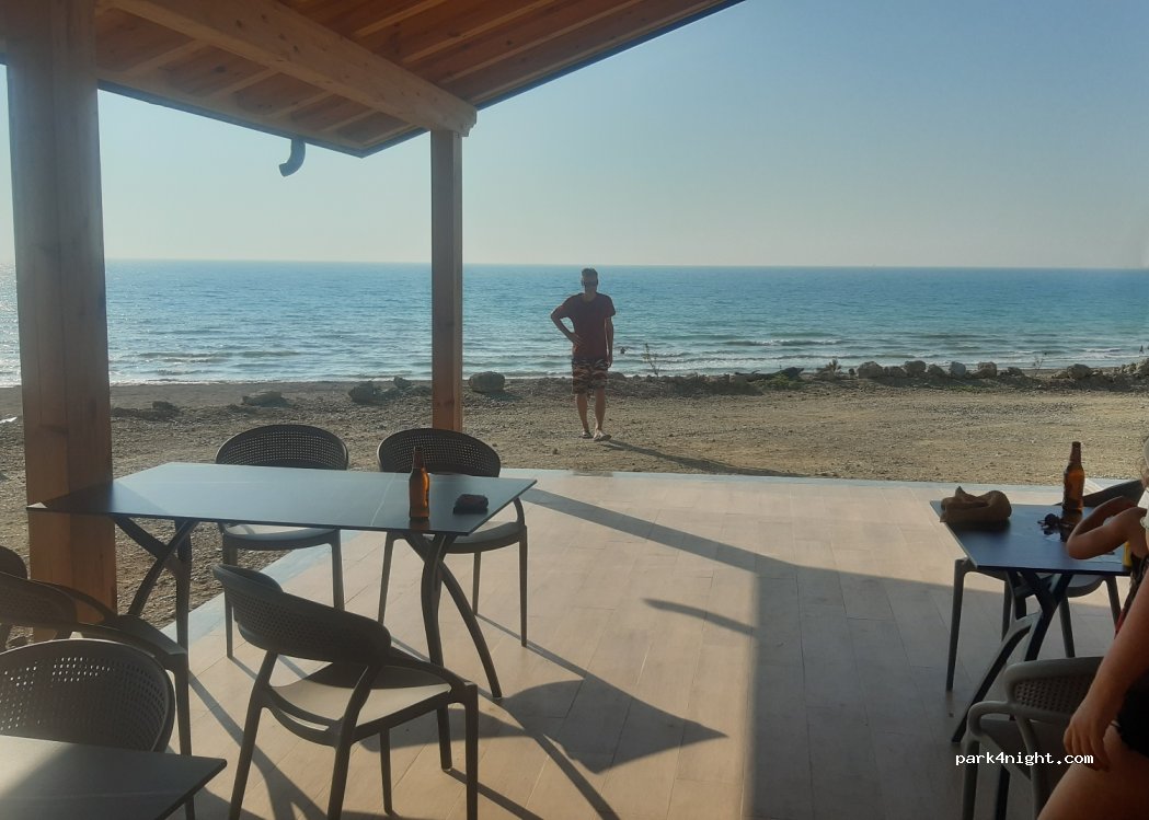 Man steht direkt am Meer auf dem Strand. Dieser ist sehr sauber da er scheinbar gereinigt wird. Toilette und Dusche sind neu und nur äußerlich noch im Bau. Man bekommt morgens einen Kaffee im späteren Restaurant. Die Anfahrt ist gut ausgeschildert, jedoch ( da kann der Betreiber absolut nichts dafür) eine teilweise steile 1,5 km Schotterpiste.