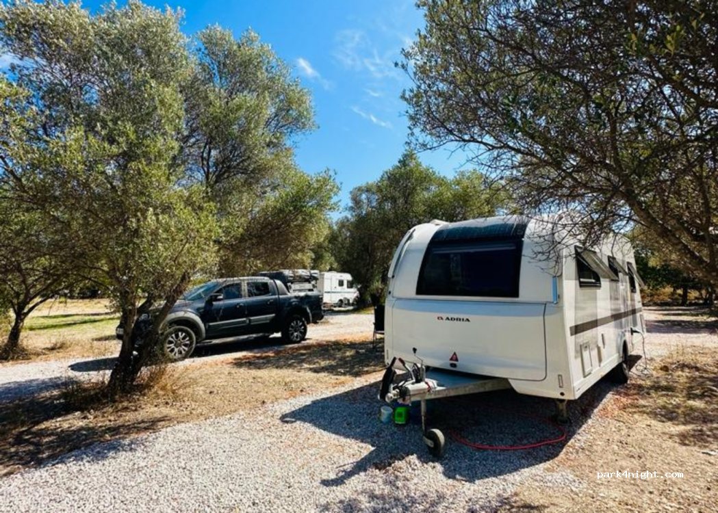 Olivia RV Camp site. Electricity, water, grey and black water disposal. Pitches underneath Olive trees. 7/24 hot water shower and wc.