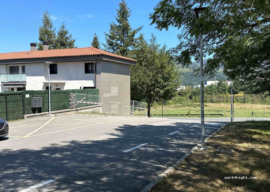 Deze plek is eigenlijk de parkingplek van de bewoners. Niet echt geschikt. In de vallei is een staalfabriek en die maakt zowel lawaai als stank. Water is er wel. Raad dit af voor overnachting. Ga naar Olaberria dorp. Grote parking, minder geluid van de fabriek en haast geen stank.l