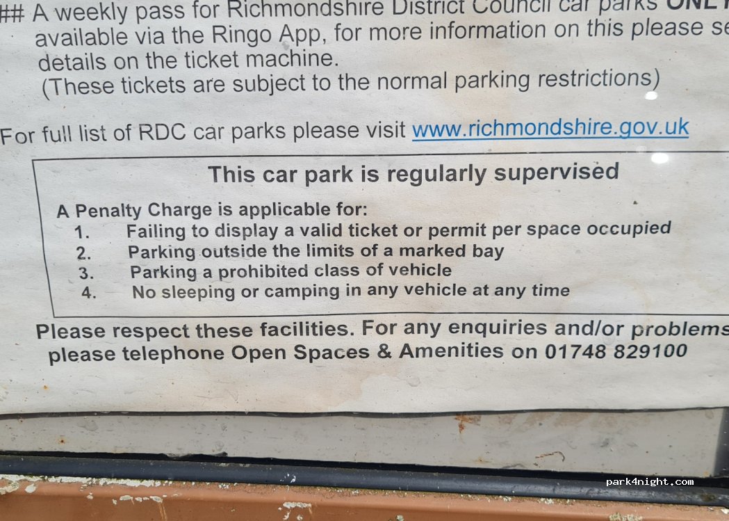We stayed here three nights over the weekend and got caught with a ticket at 07.20 on the Monday morning for £25. All the other vans were just parked there so be careful.