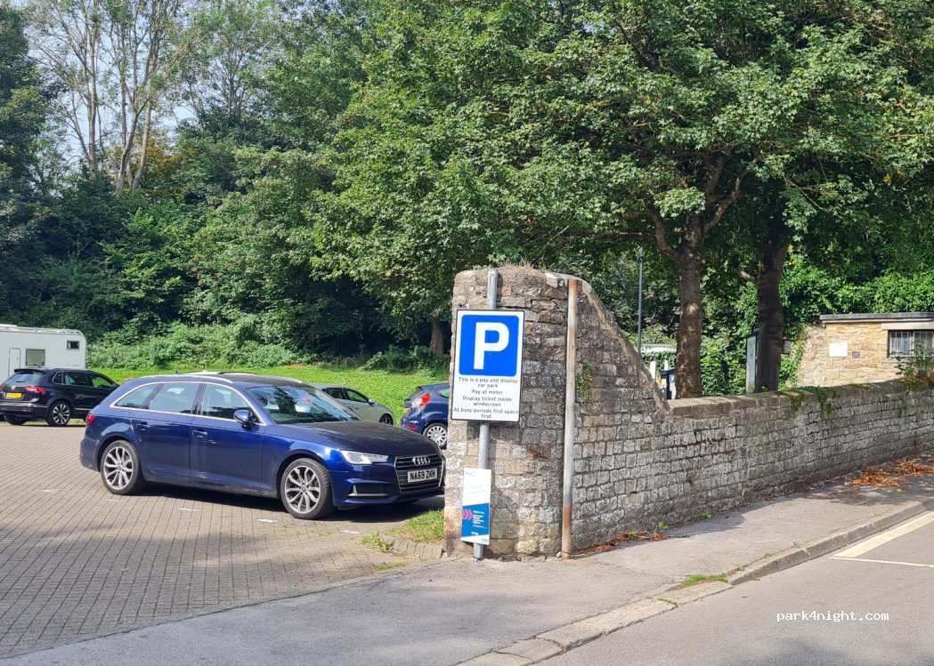Can park but sign says no sleeping or camping. Minor slopes but you can reverse to overhang grass. 6 over 7m long motorhomes here at the moment. No height barrier.