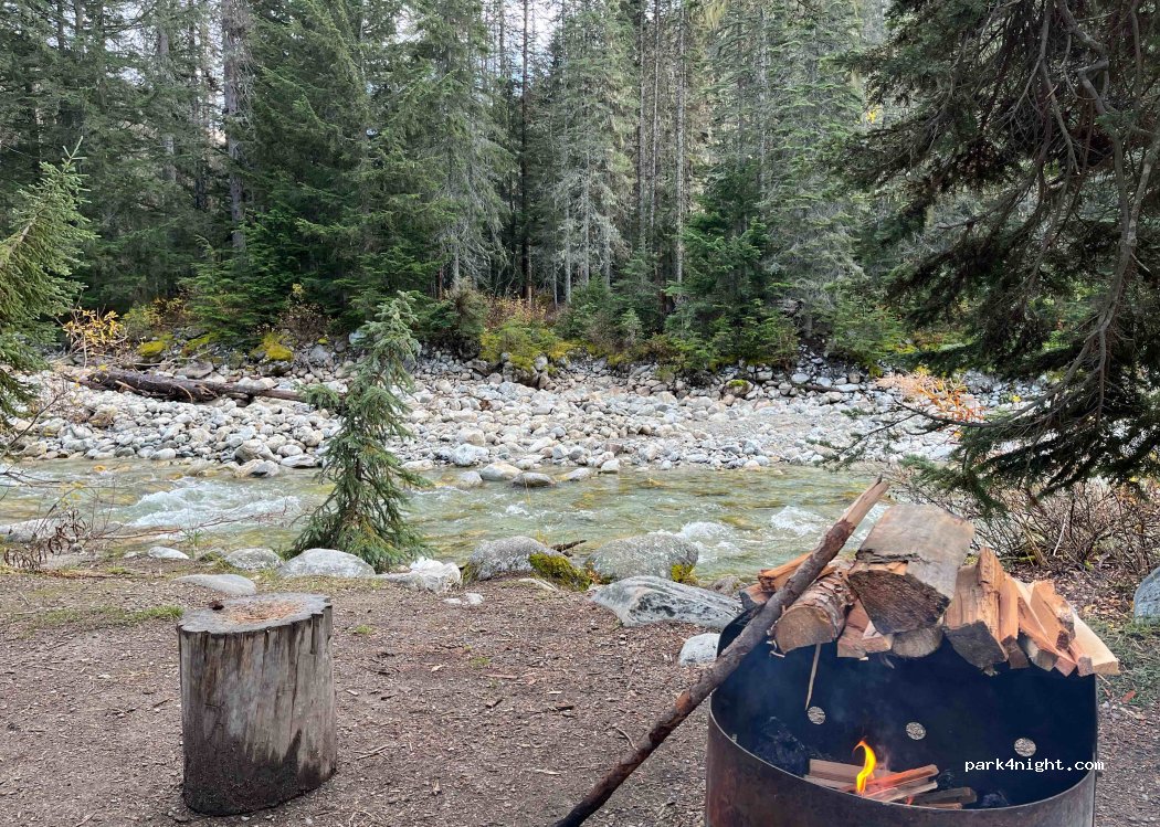 Incroyable pour y passer la nuit. Au milieu des montagnes, au bord d’une rivière, au départ de plusieurs sentiers de randonnée. Premier arrivé, premier servi, 11 octobre seulement une dizaine d’emplacements occupés. Possibilité de faire un feu. Toilettes + évier pour la vaisselle à disposition.