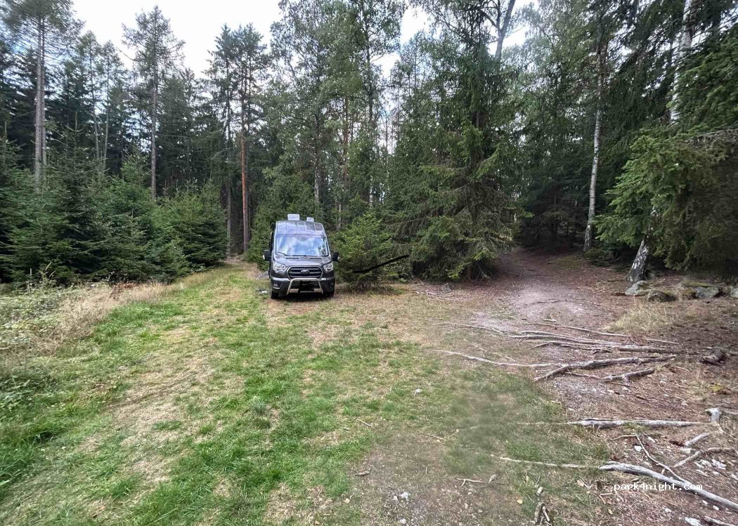 Lugar para un vehículo. Tranquilo al final del día y sin ruido por la noche. Hay que volver por el camino de la carretera en sentido contrario (150 m). Este es el más simple.