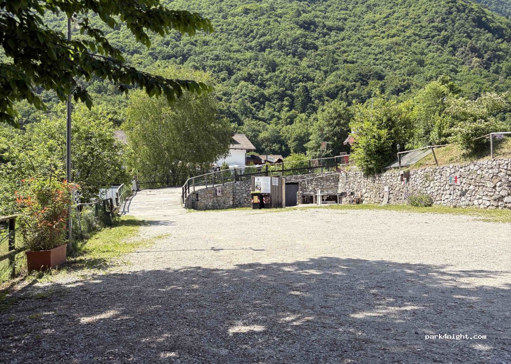 Area sosta comoda per visitare borgo e lago (anche a piedi)ma c’e anche navetta a 2 eur a testa. Gestore molto gentile si puo prenotare via wathapp (che in questo periodo di mercatini e’ raccomandabile!) volendo ha anche in agriturismo e ti porta lui a cena con navetta!! Servizi carico/scarico e corrente. 30 euro dalle 13 alle 13.00. Consigliatissimo!!