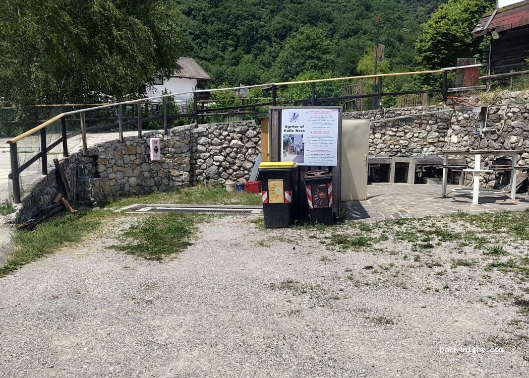 Für eine Nacht wirklich gut. Es gibt fließendes Wasser, 2 Duschen, Grillplatz, Mülltonnen, Sitzmöglichkeiten und Strom. Toiletten gibt es auf der anderen Straßenseite wenn man Richtung Lago di Tenno läuft, kostet 0,50 €. Die Straße befindet sich direkt nebenan, dadurch hat man Fahrzeuggeräusche. Stabiler Untergrund.