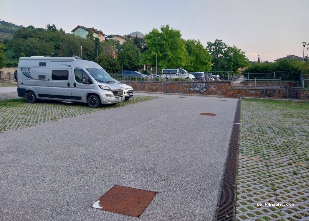 Ebener Parkplatz in der Nähe der Schulen und des Friedhofs. nur wenige Gehminuten vom historischen Zentrum von Meano entfernt.