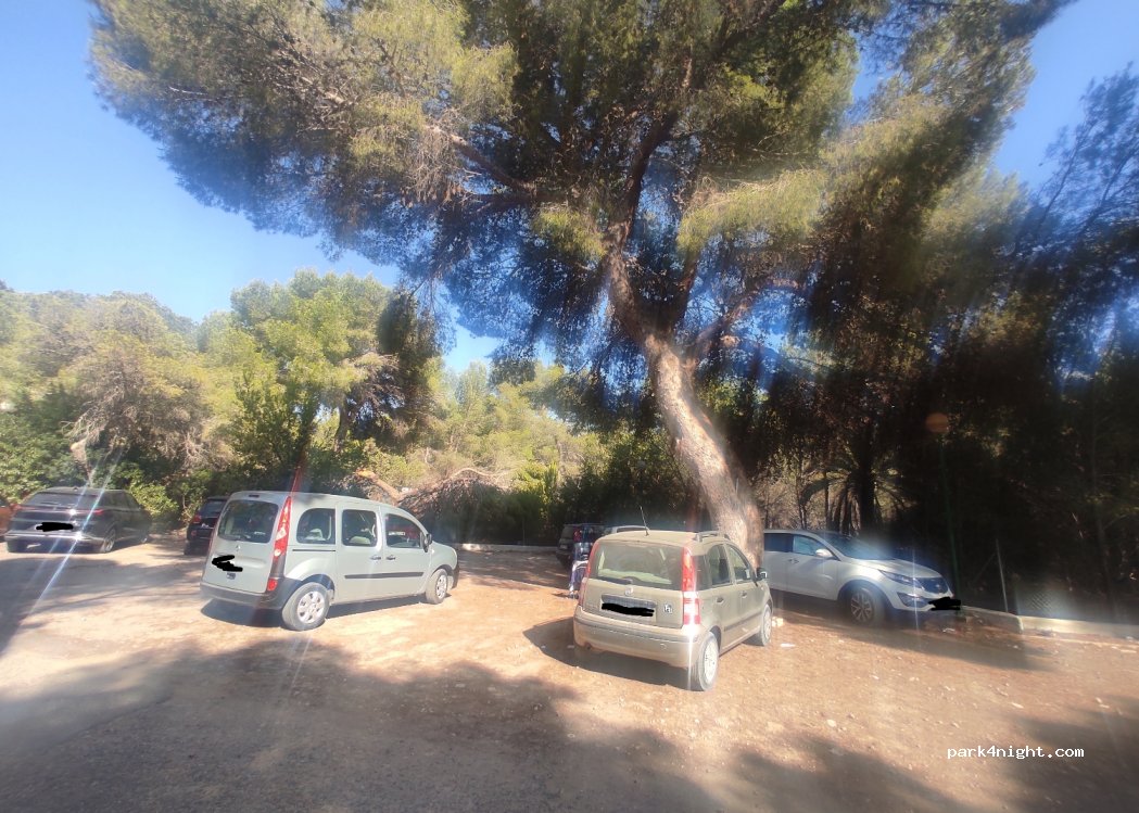 Shaded public car park. Taxi rank next door. Noisy. Traffic area next to the Riu hotel.