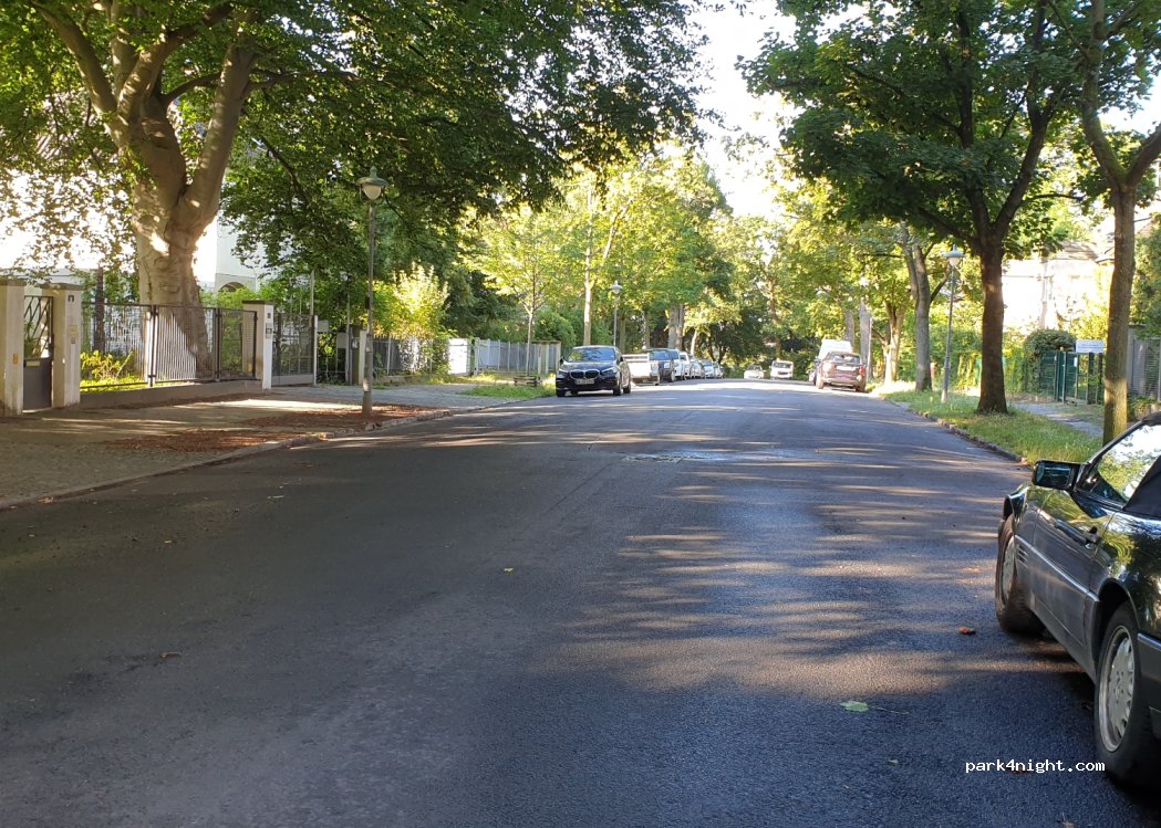 Quiet cul-de-sac behind the botanical garden. There are almost always some free parking spaces. About 500 m to the subway.