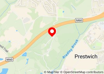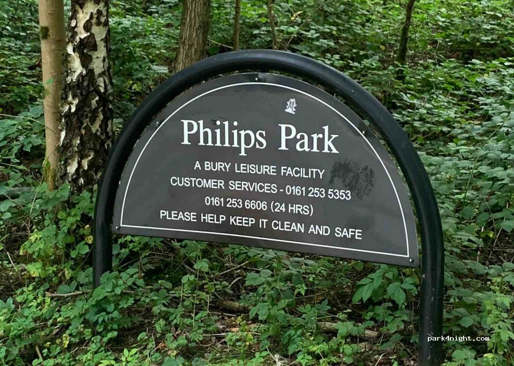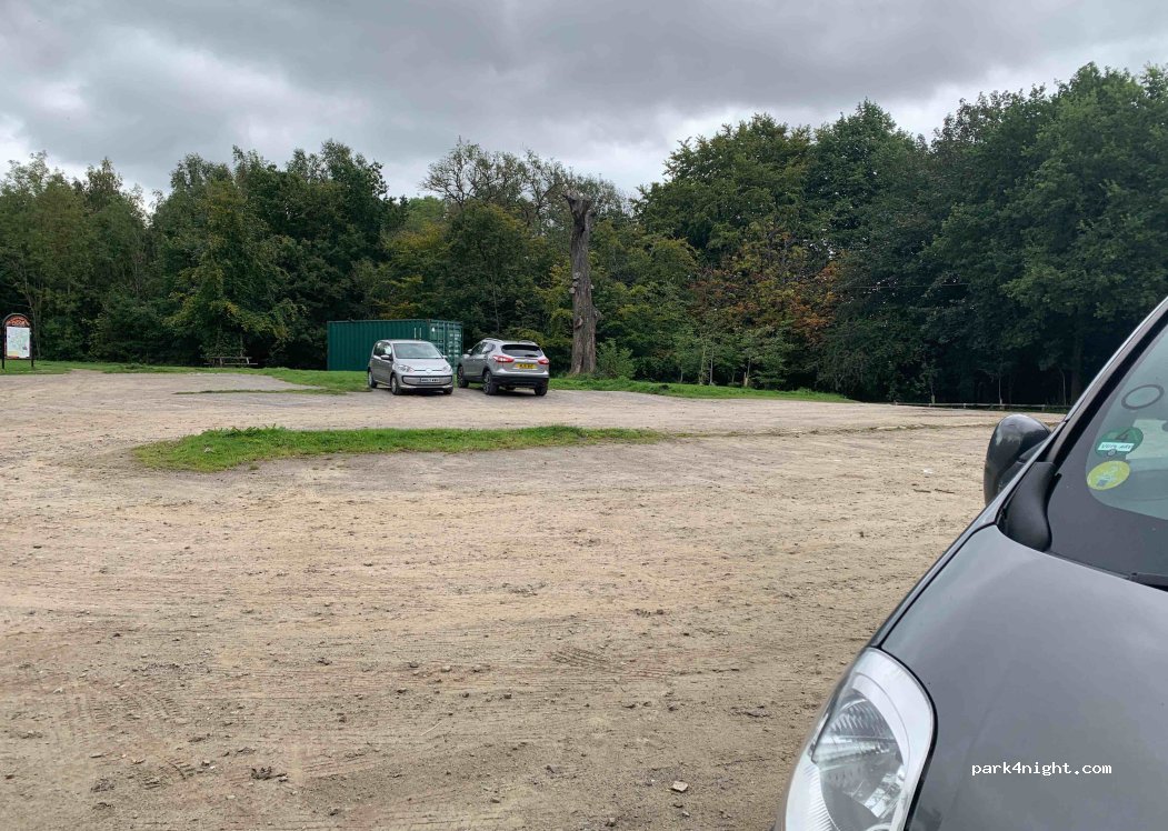 Parc forestier de Prestwich ( Parking Phillips ). Grand parking gravillonné à proximité de grande aire de jeux, sentiers VTT et balades. Pas de nuitées. Accès étroit à voie unique avec pont traversant l'autoroute.