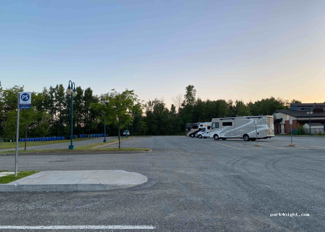 Large parking lot near the beach, bike path, walking trails, downtown Magog. Free from 9 p.m. to 8 a.m. After 8 hrs $20 / day or $5 / hour. Very quiet and clean. Lots of space We were 4 rv including 2 class A