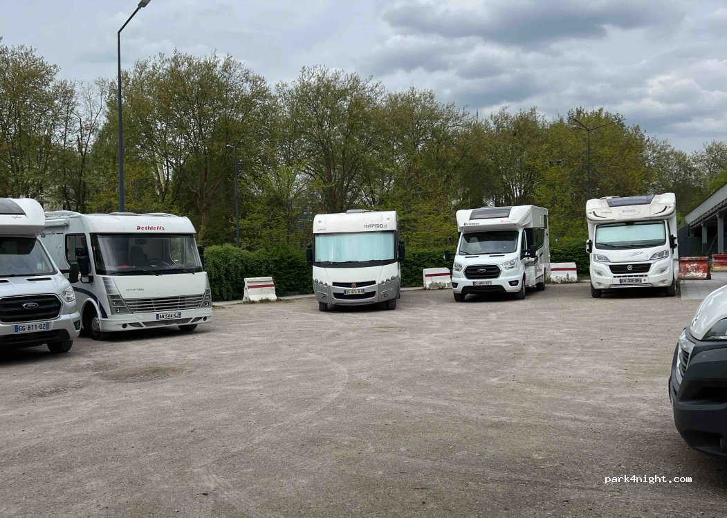 Great stop not far from the ferry and in walking distance from the centre of Lille. Very quiet and relaxed stay. The space for motorhomes is up a separate lane from the main car park which has a height barrier. just before the friterie stand on the right.