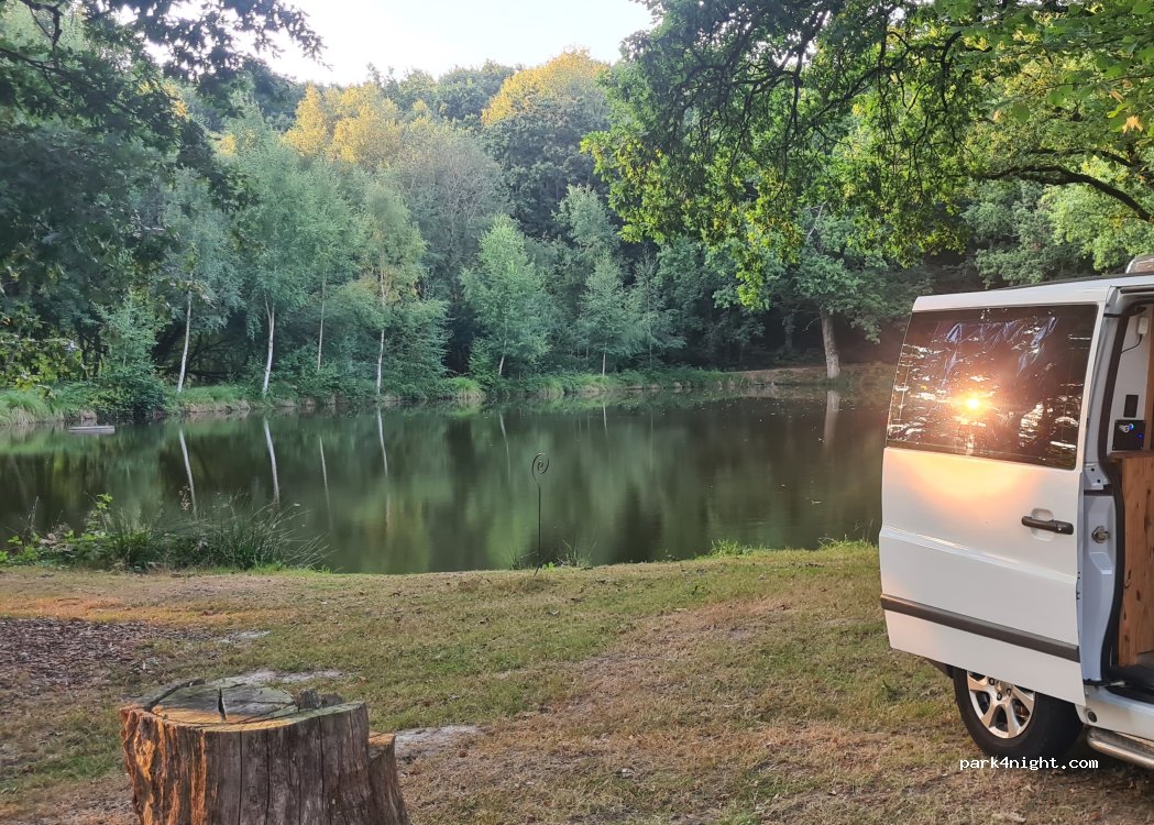 Un spot très calme et isolé en bord d’étang, entouré de prés avec des chevaux, au départ d’une jolie randonnée qui passe par la tour de bonvouloir juste à côté. Attention : réservé aux vans ou petits fourgons, il n’y a pas beaucoup de place pour de garer (1-2 max), surtout en automne où seul le chemin de départ de randonnée est praticable (risque d’enlisement aux abords de l’étang).