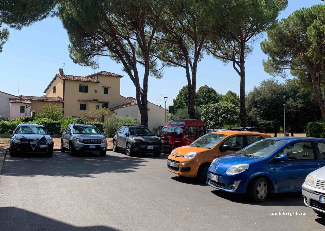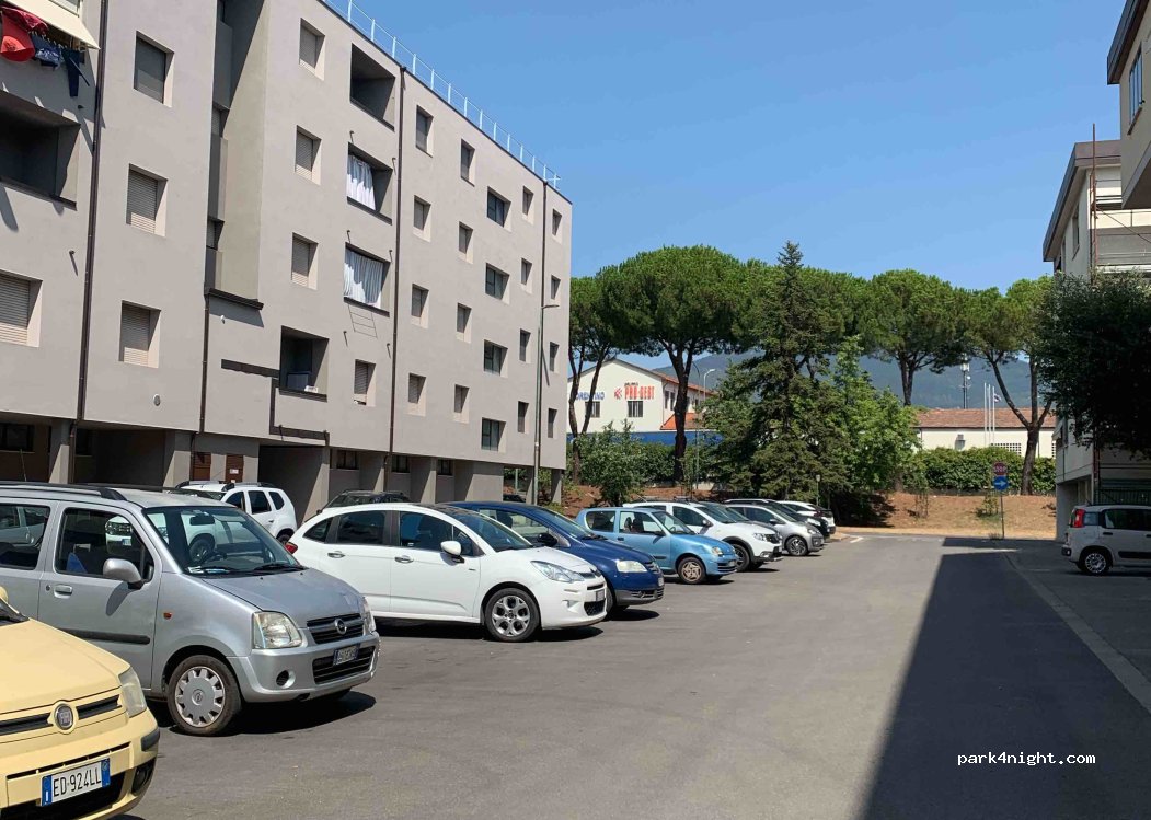 Parking dans un quartier résidentiel. Beaucoup d'espace, entouré de locaux. Les voisins sont merveilleux, une dame nous a donné de l'eau froide et des fruits et quelques autres personnes nous ont demandé si nous avions besoin d'aide pour quoi que ce soit. Bien sûr, faites attention aux moustiques pendant l'été, ici et partout en Italie. Nous avons vu quelques camping-cars garés dans la rue parallèle.