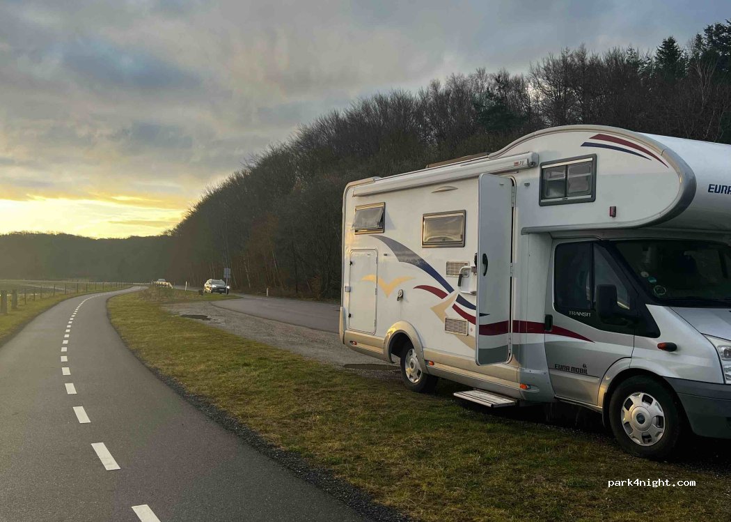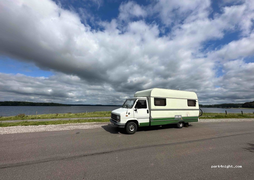Nice parking bay with picnic tables right next to the Mariagerfjord. We stayed overnight, no prohibition sign.