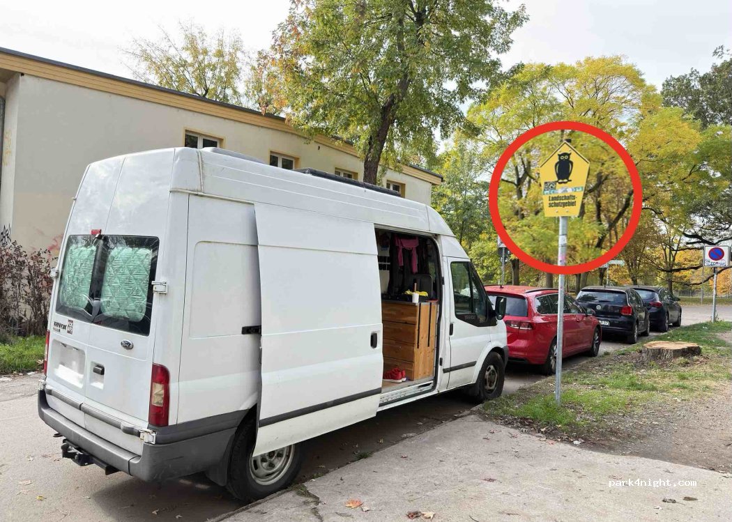 Sehr ruhige Sackgasse und perfektes, nahezu ebenes Parken Tag + Nacht möglich, öffentliche Toilette 100 m entfernt.
