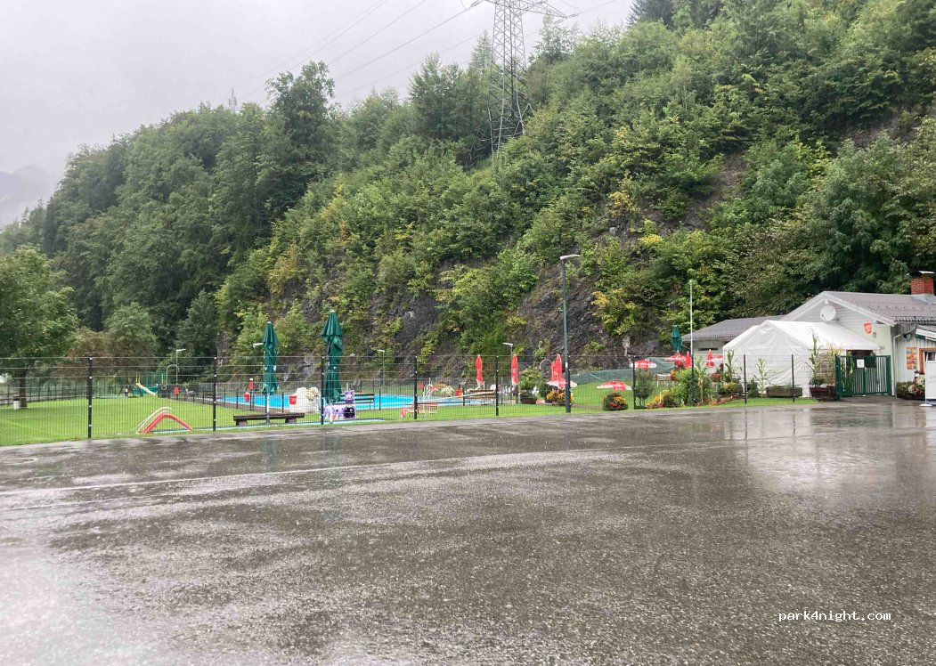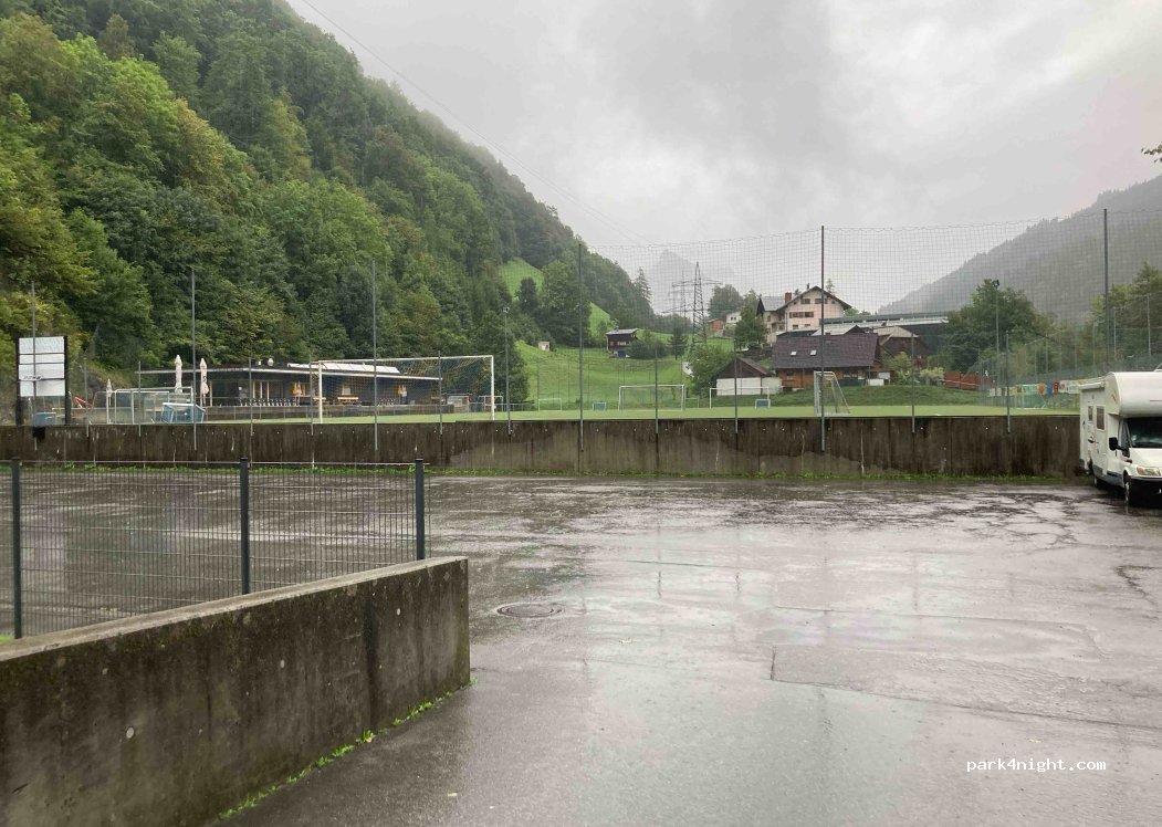 Very large car park in the center of the village with municipal swimming pool, stadium and playground with drinking water. Everything is flat, great for family time. Outdoor climbing wall for beginners. Friendly village. Trash nearby!