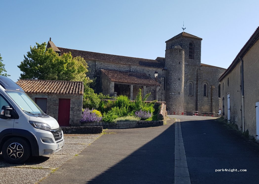 Parking calme au cœur d'un petit village, ideal pour un pique-nique, mais convient aussi pour une nuit, le terrain est plat. Convient pour vans et fourgons jusque 6m. Seul bruit : les cloches sonnent les heures à partir de 7h. 10m en contrebas du parking de l'église. Belle petite église romane à visiter, vue sur un petit verger. Boulangerie à 5mn à pied, et toilettes à mi chemin de la boulangerie.